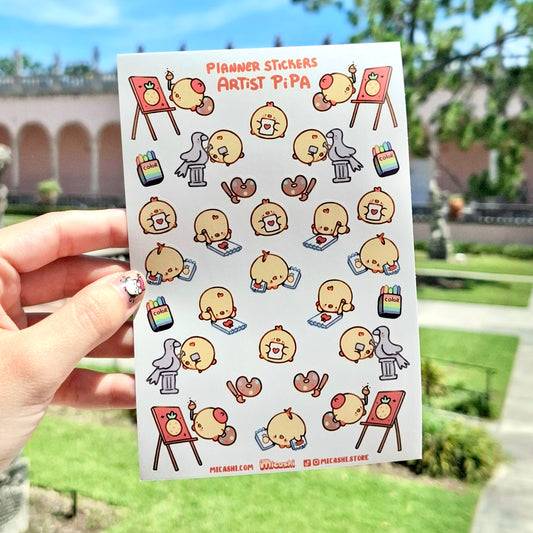 Artist Pipa ๐จ Planner Sticker Sheet - cute kawaii duck, chick, bird stickers
