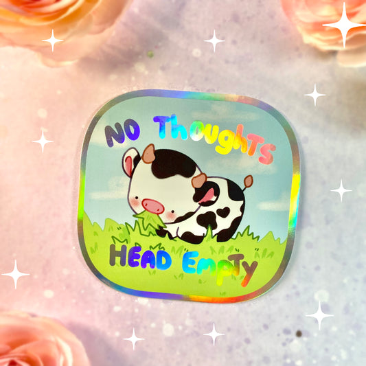 No Thoughts Head Empty - Funny Karen the Cow Holo Sticker