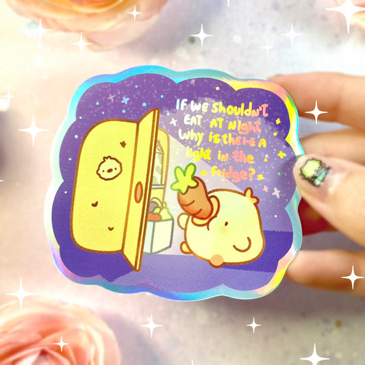 If we shouldn't eat at night why is there a light in the fridge? - Funny Freezer Pipa Sticker