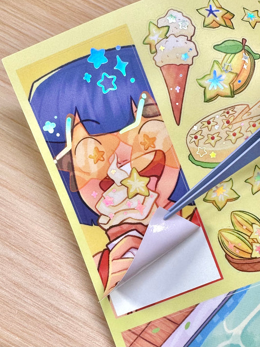 Star Fruit - Cute Vinyl sticker sheet with holographic foil details, matte laminated
