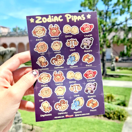 Zodiac Pipa ♎ Planner Sticker Sheet - cute kawaii duck, chick, bird stickers