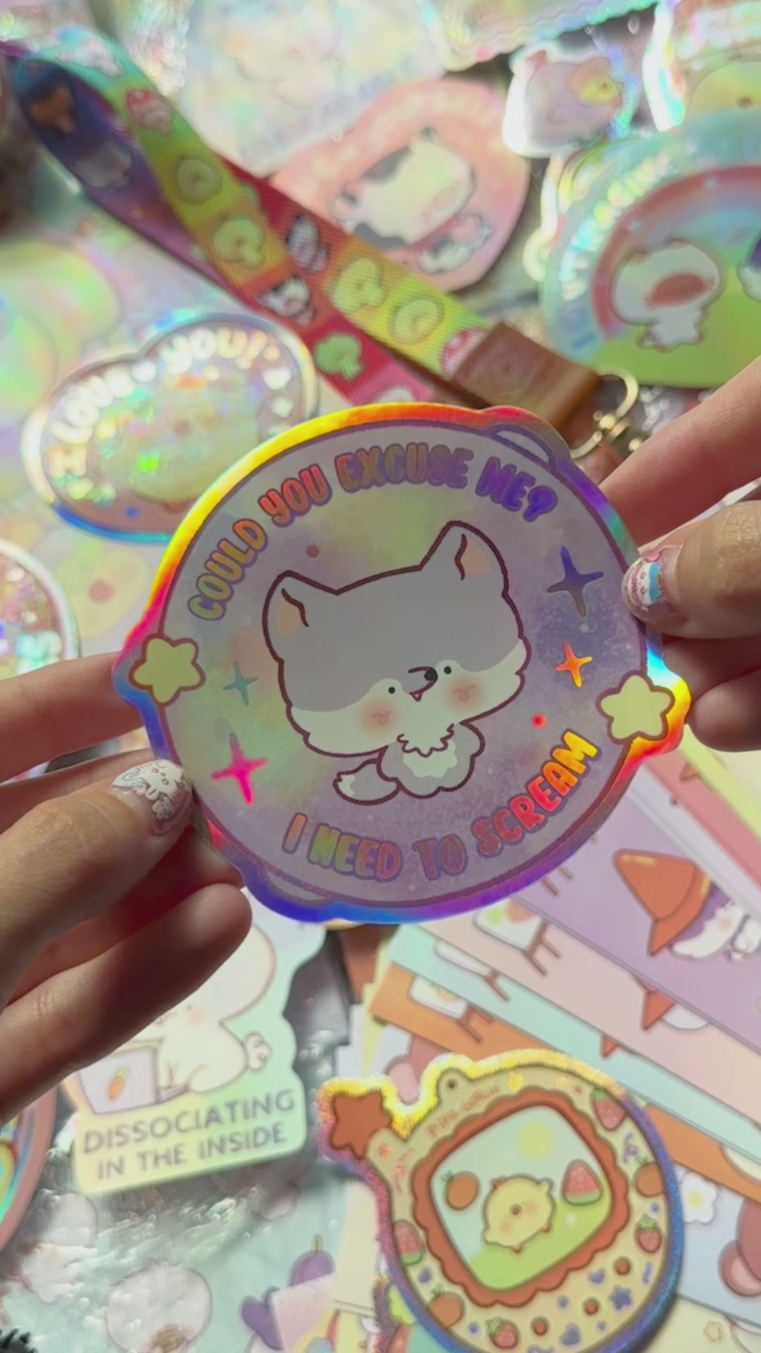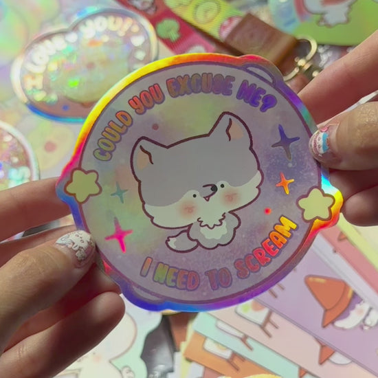❤ Holographic Vinyl, Laminated in glossy, Die Cut Sticker.