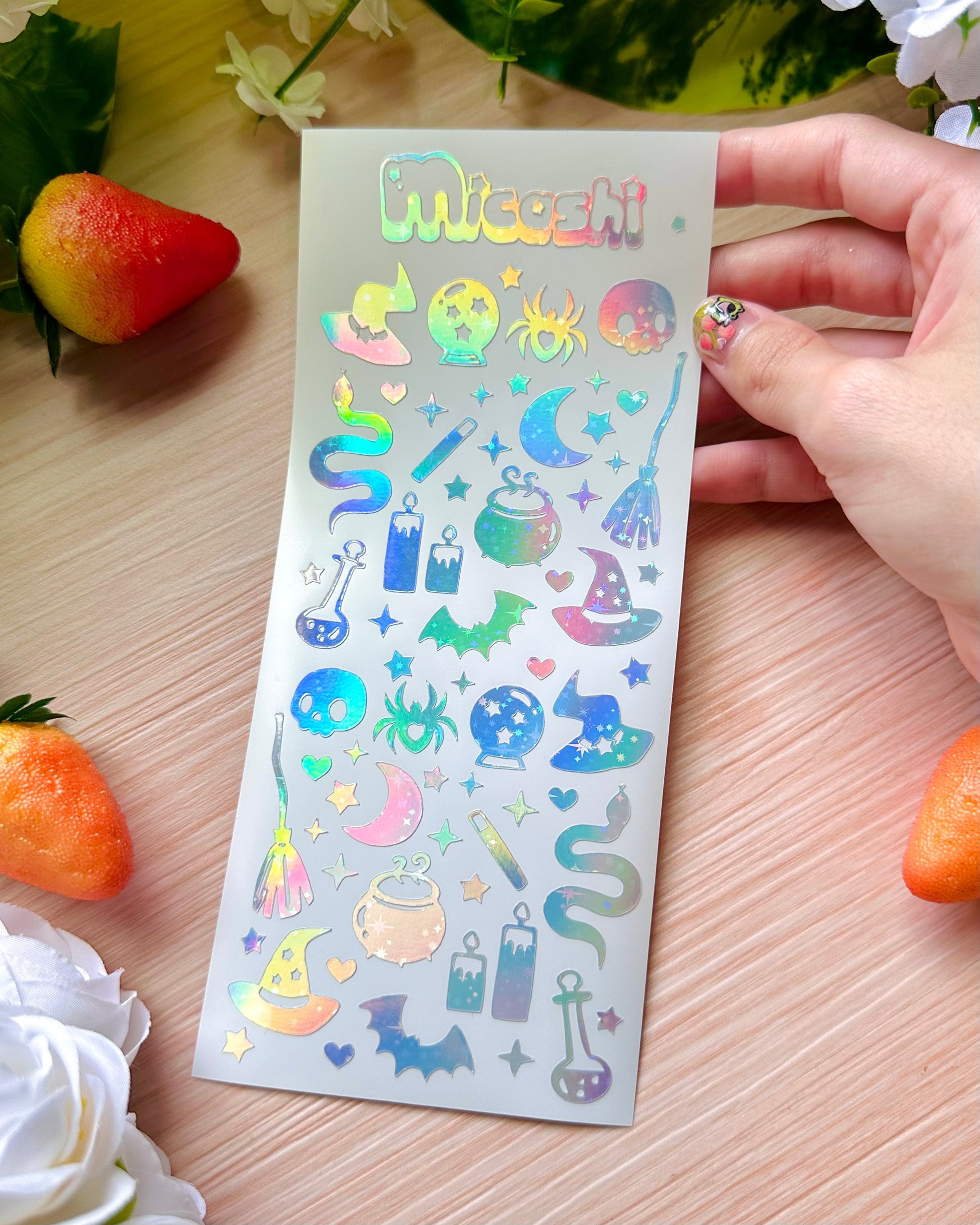 This product has been improved, the sticker sheet has gone from 3.4“x7” to 3.5“ x 8”, and the holographic vinyl is now laminated with a layer of holographic stars, making the material more attractive, durable, and waterproof!